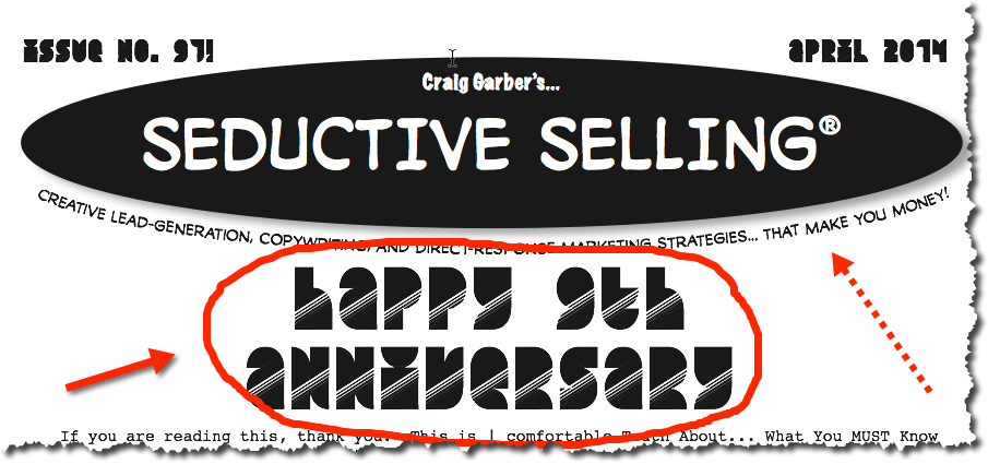 Hope you had a great weekend. I was recently interviewed by John McIntyre, the Auto Responder Guy, on his well-known e-mail marketing podcast. The interview is now available and you can listen to it right here Feel free to leave any comments underneath today’s post below. Have a great week. Now go sell something, Craig…