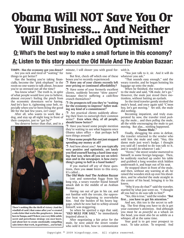 Advertorials & TearsheetsOne of the best ways of selling is to use an advertorial (an ad that looks like a news article) as your media. Many times, these are printed on a tearsheet. A tearsheet looks like an article that was ripped out of the newspaper. Here are some examples of advertorials. Hope you can learn something from them. If you want to download and print them out, just make sure you have Adobe Acrobat Reader. If you don't have the Adobe Acrobat Reader software, you can get it for FREE over here. Then click on the advertorials themselves and you'll be able to download each of them onto your hard drive as a pdf file. Every month, since April 2006 I have been profiling and writing